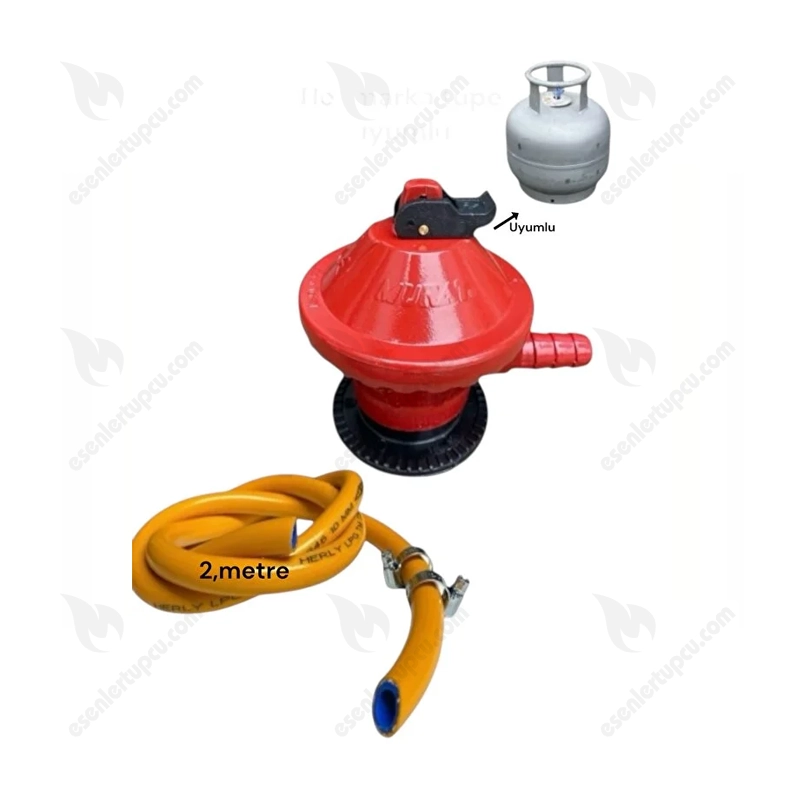 Büyük Tüp Başlığı Dedantör 2 Metre Gaz Hortumu 2 Kelepçe Set